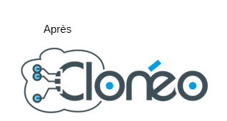 CLONÉO : logo d'une société informatique (clonage système) STRATOLOGIE : agence de stratégie et de management